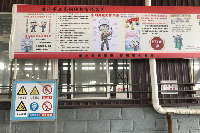 眾基鋼結(jié)構(gòu)有限公司認真貫徹“安全第一,預(yù)防為主”的生產(chǎn)方針,全面保障員工在安全的工作環(huán)境中正常生產(chǎn)作業(yè)。